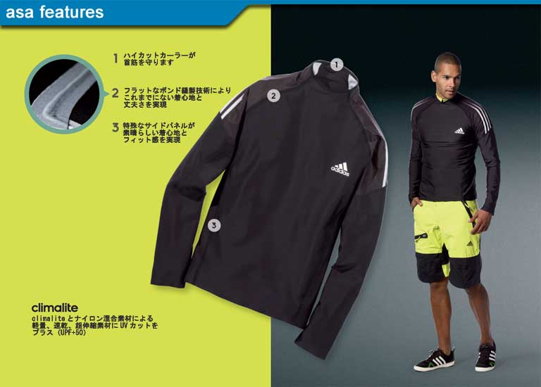 asaはフィット感と自由な動きを可能にする最新の生地を使用した革新的なシリーズです。