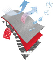 高い通気性と完全な防風性を備えています。ソフトなミドルレイヤーとしての性能と防水性を備えたアウターレイヤーとしての性能を一つの生地で実現しています(完全防水ではありません)。動きやすさを損なわず、幅広い用途、幅広い天候条件下でご使用頂けます。