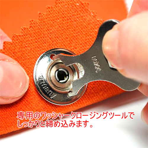 プレートタイプは原則として硬い面へのビス打ち用ですが、生地用のキャップ型リベット(=Durableキャップ。詳しくはこちら)で生地に取り付けることも出来ます。ワッシャータイプは単独で生地に装着することが出来、取り付け要領もメスパーツと同じです。ワッシャータイプは将来的に生地が弱ってきた際にも取り外して再利用できる可能性があるため経済的です。